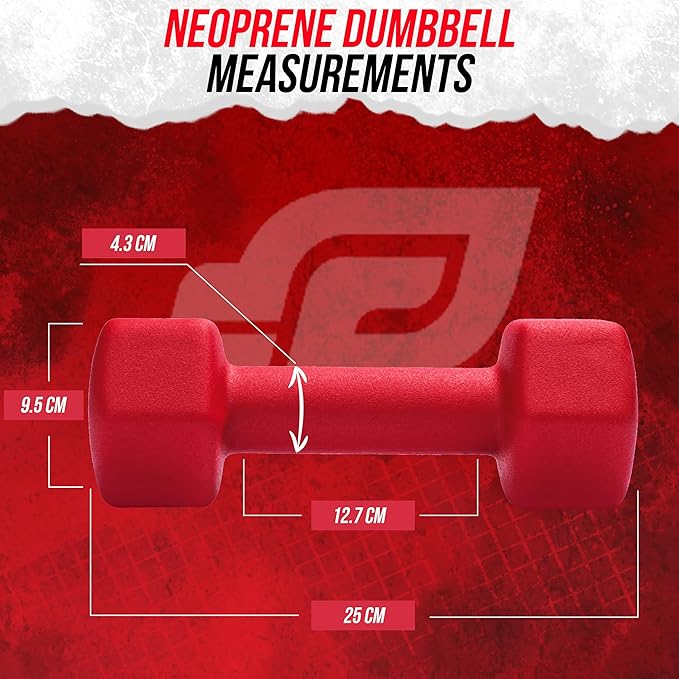 - The box includes 2 Dumbbells that comes in 12LB Size and Red Color. Construction is of cast iron, which is of superior quality along with neoprene gripping that allows lifting of heavyweights simpler and easier