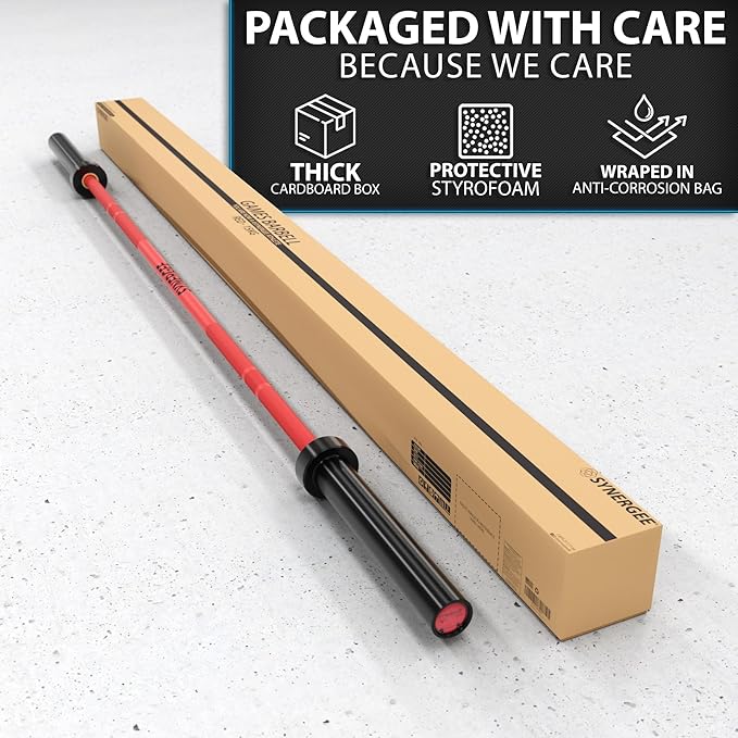- ★ FITTER, FASTER, STRONGER ★ - With a loadable sleeve length of 16.4 inches (20 kg) and 13 inches (15 KG), our barbell can carry heavy loads, helping you push out of your comfort zone and reach your potential. Created by athletes, for athletes, our Synergee Staff have witnessed members of our Synergee Community crush their PRs with the Games Bar, which is exactly why we created it.