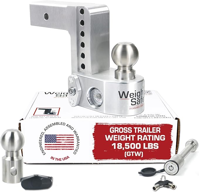 - ADJUSTABLE BALL MOUNT: This 6 Inch drop hitch is a dream come true, allowing you to tow trailers of different heights with the same vehicle. The drop hitch adjusts in 1" increments so you get the perfect fit every time. All Weigh Safe ball mounts come standard with a high strength Dual Pin Lock that secures your trailer to your drawbar. All our locks come standard with a custom fitted dust cover to increase longevity. Fits 2.5” Receivers - F-250/350+, Chevy 2500/3500+, Ram 2500/3500+, etc.