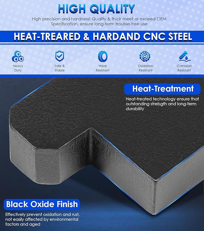 - 【SUPERIOR MATERIAL】: Constructed from heavy duty and heat-treatment carbon steel with outstanding solid and great durability. Surface coated with black oxide finish, effectively prevent oxidation and rust. Accurate calculation and precision cutted make sure a perfect fit. High precision and hardness ensure that a reliable long-term service.