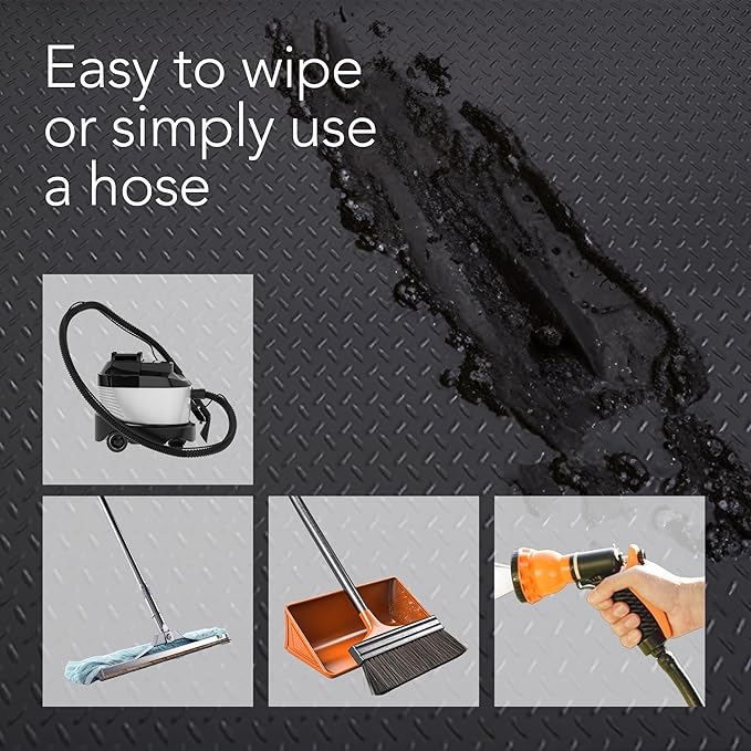 - THE DAMAGE-DEFYING SOLUTION TO SPILLS & STAINS: Safeguard your indoor/outdoor flooring from stubborn grease, rust, oil spills, tire skids, leaks, and more with our durable vinyl mat, designed to deliver unbeatable protection against costly damage
