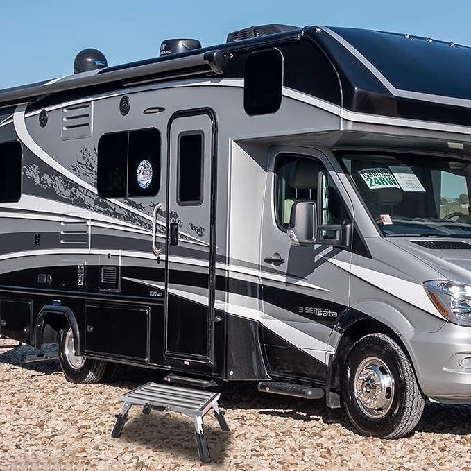 - Widely Used: This adjustable height step stools is highly recommended for a vehicle, RV, travel trailer, high SUV, van; also can be in uneven ground such as desert, beach, boat
