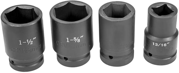 - Perfect Size Set - Torque wrench multiplier set includes (1) 1-inch drive torque multiplier heavy duty lug wrench, (1) rocking bar handle, (3) 6-point sockets, (1) 4-point square socket, and (1) extension bar; 6-point sockets include sizes 1-5/8 inch (41mm), 1-1/2 inch (38mm), and 1-5/16 inch (33mm); Square socket is 13/16 inch (21mm); This labor saving wrench set fits your other 1-inch drive sockets