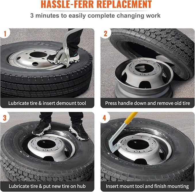 - 【WIDE APPLICATION】- Mounting and dismounting 17.5" to 24.5" tires, suitable for most radial and bias-ply tires such as cars, truck, semi, and bus tires.