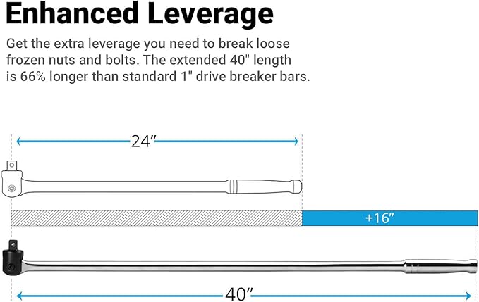 - Get the extra leverage you need to break loose frozen and stuck nuts and bolts. Extended 40 in. length, 50% longer than standard, gives you extra leverage and makes your job easier