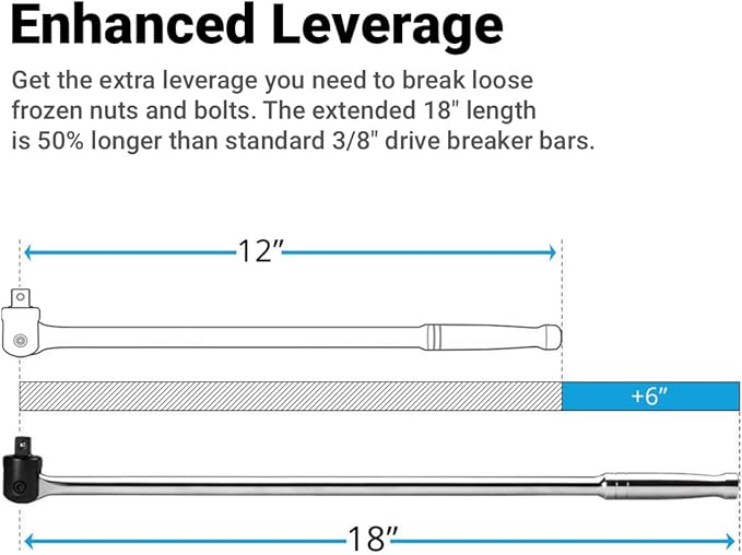 - Get the extra leverage you need to break loose frozen and stuck nuts and bolts. Extended 18 in. length, 50% longer than standard, gives you extra leverage and makes your job easier