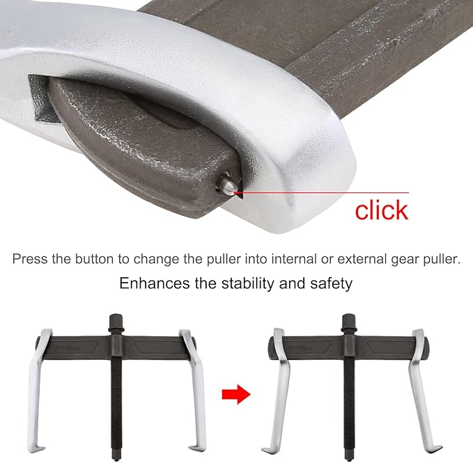- Multi-purpose Reversible Jaw Puller - The two arms of the puller can be mounted with the claws facing inside or facing outside, suit for internal and external pulling of bearings and other components.