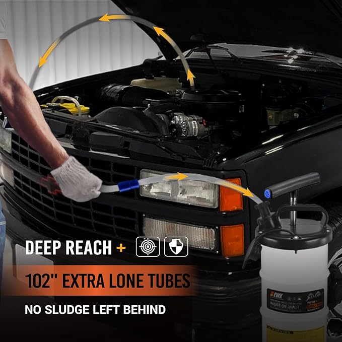 - 【Extract Every Drop of Oil】The extra-long 102-inch tubing slides deep into reservoirs, pulling out every last drop of fluid. Perfect for low-clearance cars, motorcycles, boats, and other hard-to-reach spots, with optional hoses available for even greater precision. Built from high-density, heat-resistant polyethylene that withstands up to 140°F, this extractor stays strong even on the hottest days.
