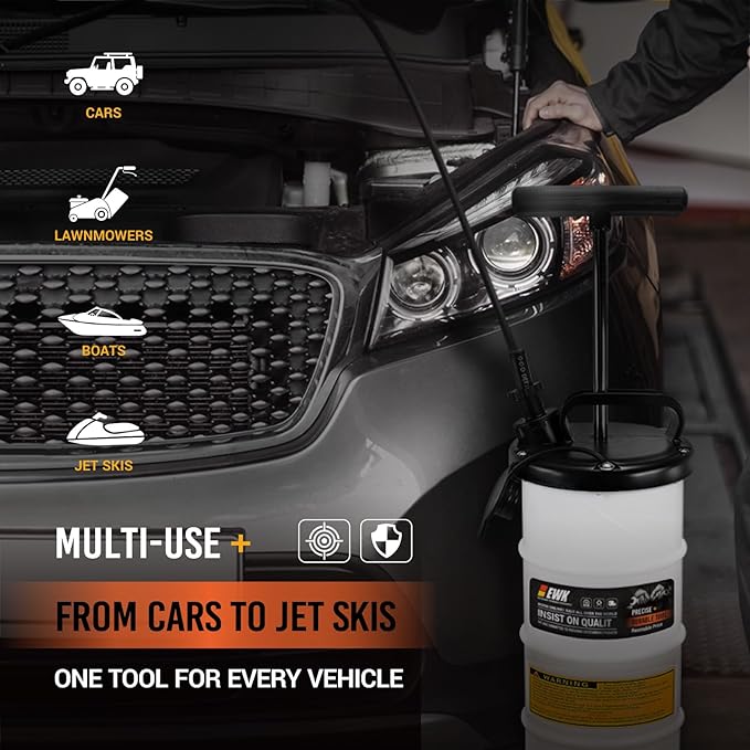 EWK 6.5L Manual Oil Extractor Pump for Oil Change, Fluid Evacuators for Cars, Boats, Jet Skies, Lawnmowers, Quick Oil Drain in 10 Pumps