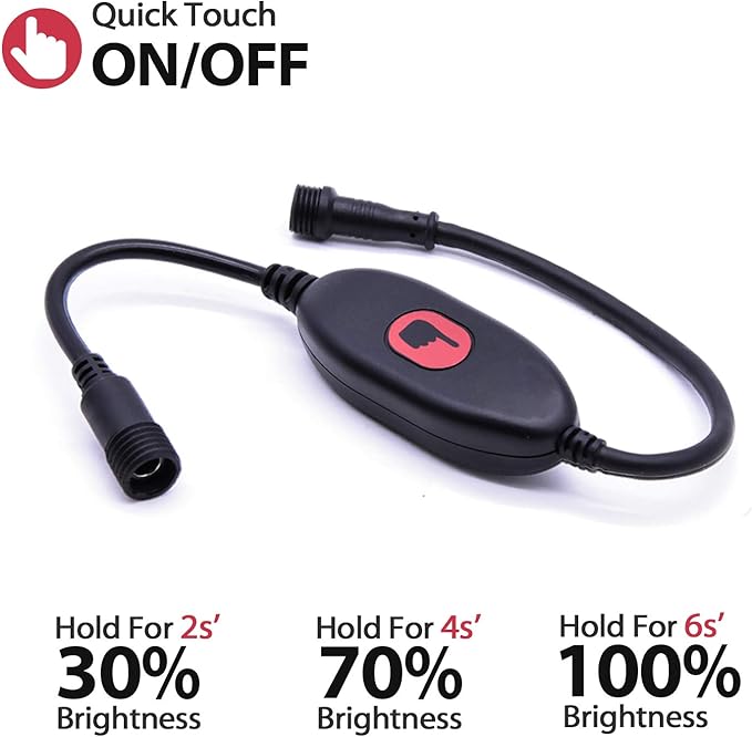 - 【Package Includes】1 x Heavy duty Light Strip in Mounting Sleeve, 1 x Battery-Clamps Adaptor & Car Charger Adaptor, 1 x 16ft/5M 20AWG Extension Cable, 1 x Touch Switch, 1 x Waterproof Twist-on Connector, 1 x storage bag.