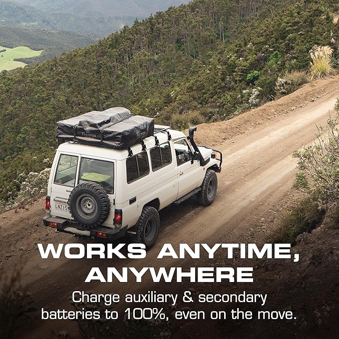 - Built Tough: Engineered for overlanding, RVing, and off-road use. The dual input battery charger withstands deep water crossings, extreme heat up to 176 F, dust, and vibration. Fully sealed electronics deliver reliability in every environment