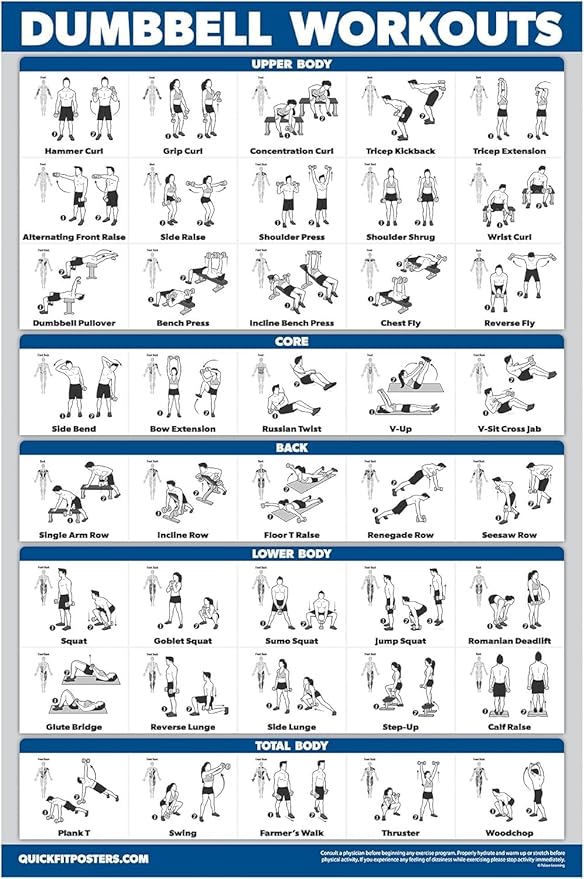 Palace Learning Dumbbell Workout Exercise Poster - Free Weight Body Building Guide | Home Gym Chart - LAMINATED, 18" x 24"