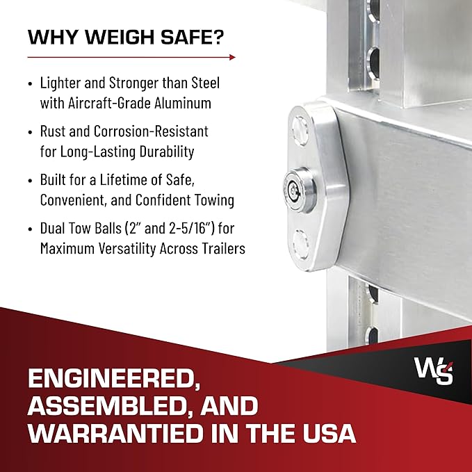 - 6" ADJUSTABLE BALL MOUNT AND STOWABLE: 6” drop hitch & 7" rise hitch, adjusts in 1" increments so you get the perfect fit for any trailer height - This Weigh Safe Hitch can be easily stowed under your vehicle when not in use