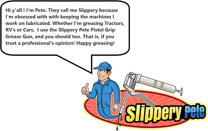 Slippery Pete Pistol Grip Grease Gun - Long Lasting Heavy Duty Steel Construction - Lubricate Tractors, RV's and Cars - Uses 14 Ounce Grease Cartridges