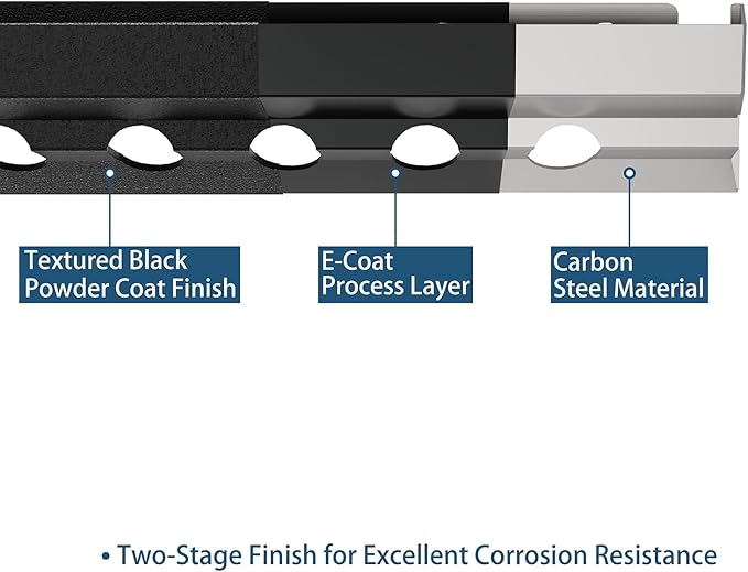- 【Heavy-Duty Construction】Built from heavy-duty 11-gauge (3/32 inch) steel for reliable structural strength, it features a textured black powder coat finish paired with premium internal E-coating. This dual-protection design ensures long-lasting corrosion resistance and durability, even in harsh off-road or weather conditions
