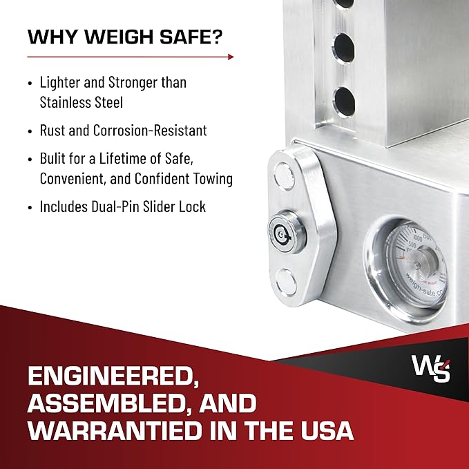 - Premium Trailer Hitch: The Weigh Safe Aluminum Adjustable Trailer Hitch provides reliable and sturdy towing performance for any adventure; it also has a built-in scale so you can safely load and tow