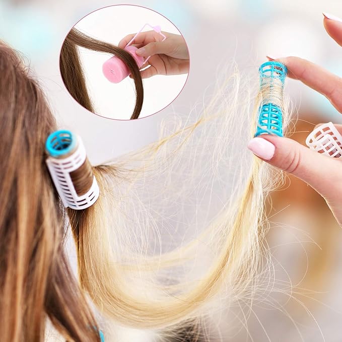- Note: this product is vacuum packed; It is recommended to leave it for 3 days before use to restore it to a round shape; And easy to use rollers grip the hair without the need for pins and clips; Just open the plastic fixed band wrap your hair on the roller, close the fixed band, go to sleep; Wake up you can get a beautiful curls