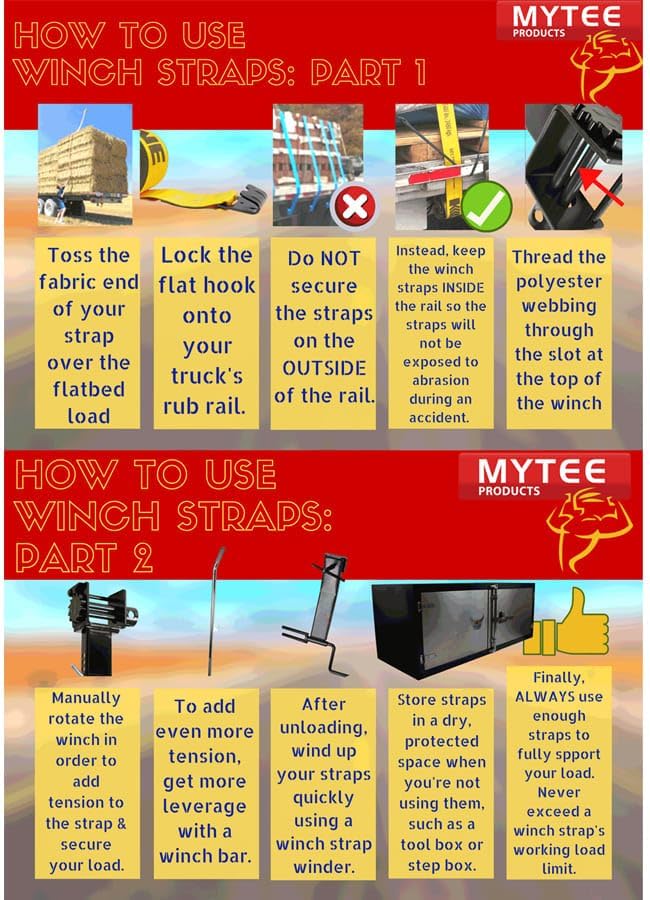 - All winch straps are made from heavy duty webbing for minimum stretch and maximum wear resistance. These weather- resistant cargo straps provide the strength and durability demanded in flatbed operations.