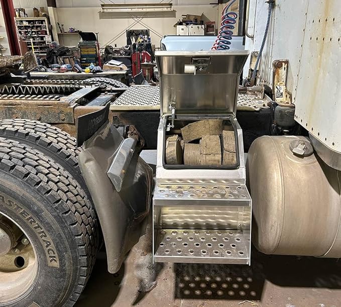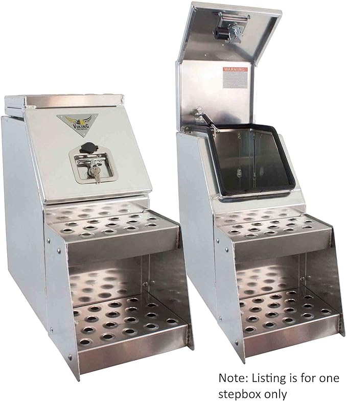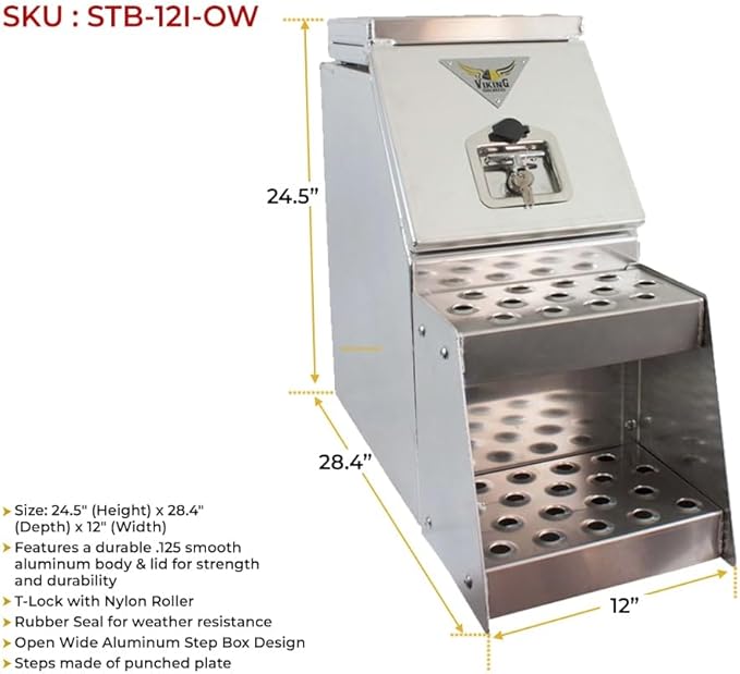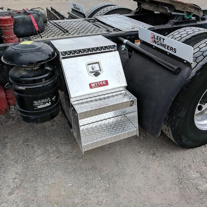 Mytee Products 24.5"x28.4"x12" Aluminum Side Mount Semi Truck Tool Box with Saddle Step Open Wide Design & T-Handle Latch Lock - Heavy Duty Weather Tight Step Tool Box for Flatbed Trailer