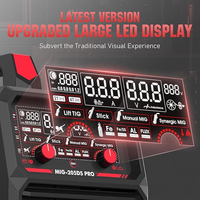 - 5 IN 1 MULTIFUNCTIONAL: The MIG-205DS PRO is capable of Gas MIG/Flux Core MIG/Spool Gun Aluminum MIG/Lift TIG/Stick. (additional lift TIG torch required and spool gun required). This unit caters to a wide range of welding applications and meets your various welding needs.