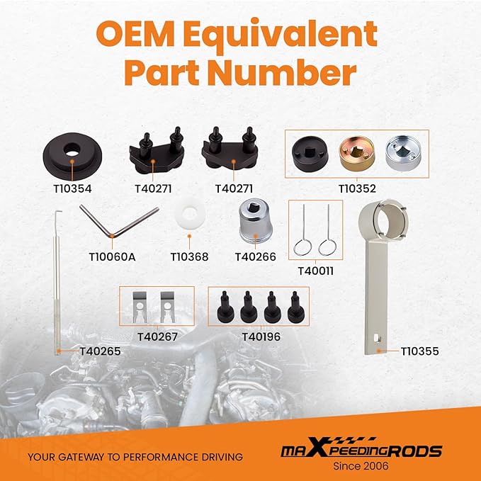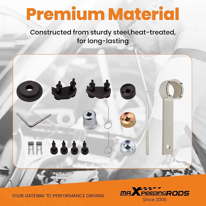 - 【Precise Fit and Reliable Quality】All tools are made of high-hardness, high-quality materials that are not easy to break, and have passed rigorous engine testing, professional and reliable. maXpeedingrods, with decades of experience in precision engineering, we can offer your a master timing tool kit with quality and durability second to none.