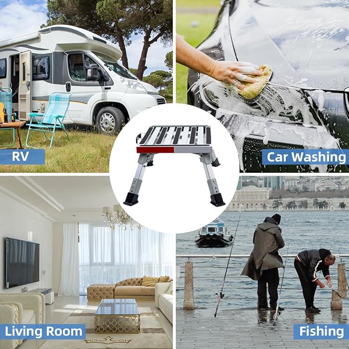 - MULTI-PURPOSE RV STEP: Suitable for various vehicles including RV, motorhome, trailer, truck, and SUV, this step stool offers safe and stable access when loading gear, cleaning windows, or reaching high areas during camping or travel