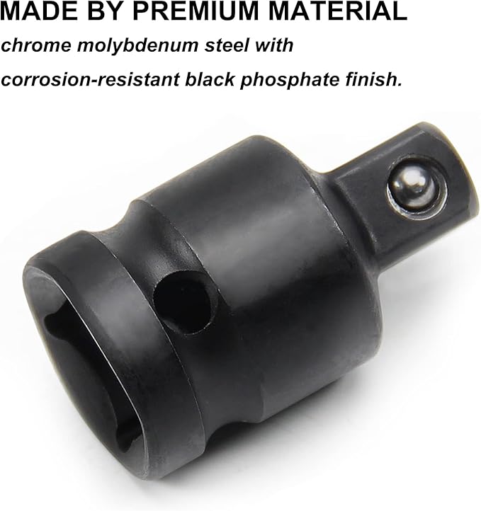 - 【1/2'' to 3/8''】- Connect 1/2" (Female) drive tools to 3/8" (Male) drive sockets.