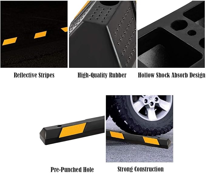 - 【Protect Your Car & Garage】With the dimension of 72” x 6” x 4” (L x W x H), this parking curb efficiently prevents the cars from over-running, hitting the wall or other cars, and also protects garage. And the bottom hollow design with high resilience rubber provides a buffer to protect car and extends the life of tires.