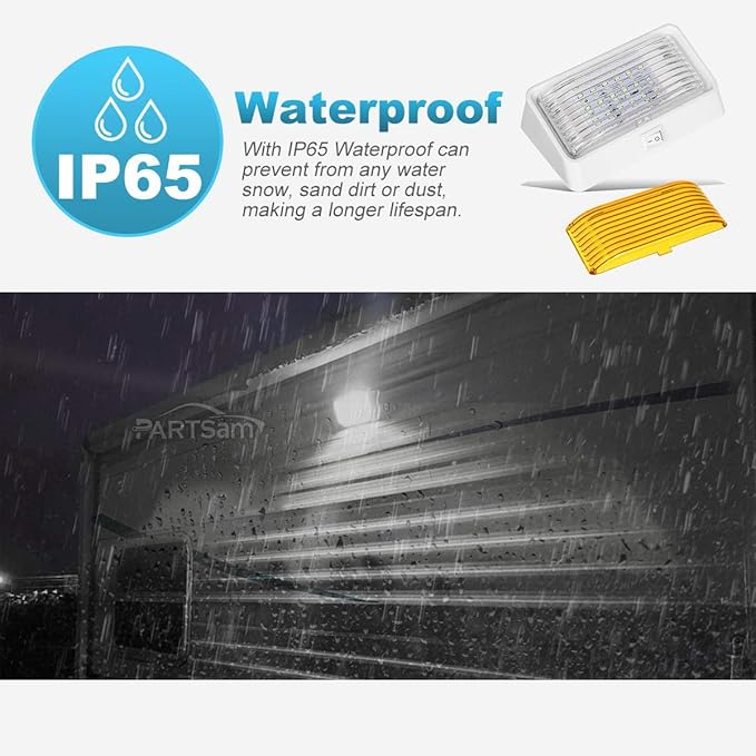Partsam Rectangle LED Porch Light with On/Off Switch, RV Exterior Utility Light Fixture Cover Replacement for Motorhome Campers, 12V, 5th Wheels, Clear and Amber Lenses Removable