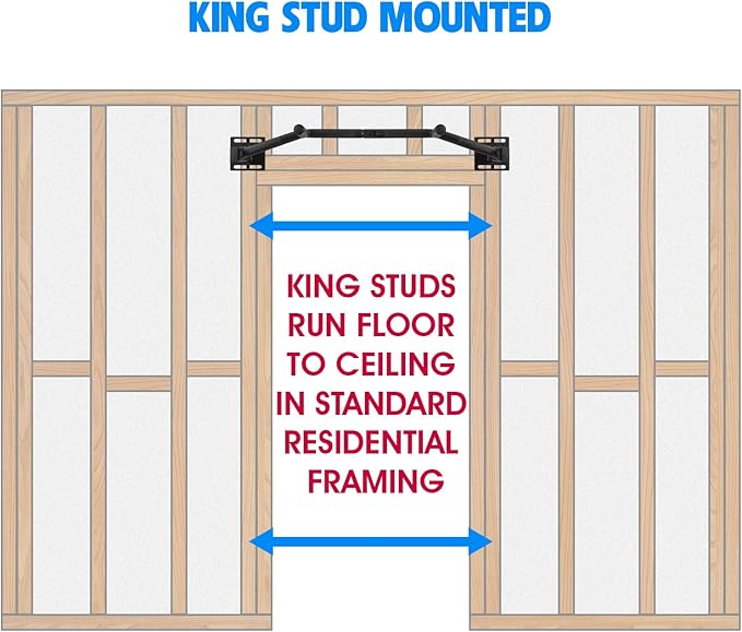 - FIT MOST WIDE DOORWAYS: With its width of 36 inches, the pull up bar is compatible with king studs ranging from 34” to 38”. At least 38” of minimum width is required for installation
