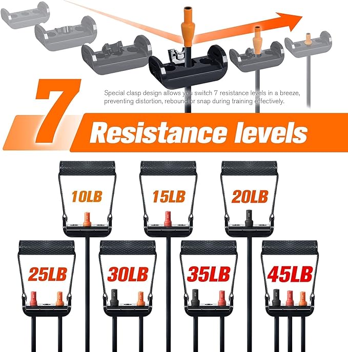 - 【Different Color Resistance Bands】Purple (20 lbs), Red (15 lbs), Orange (10 lbs). All exercise bands are 48" in length, and can be used alone or stacked in any combination up to 45 lbs for extra challenges. Perfect for burning fat and toning your arms, shoulders, chest, glutes, legs, etc