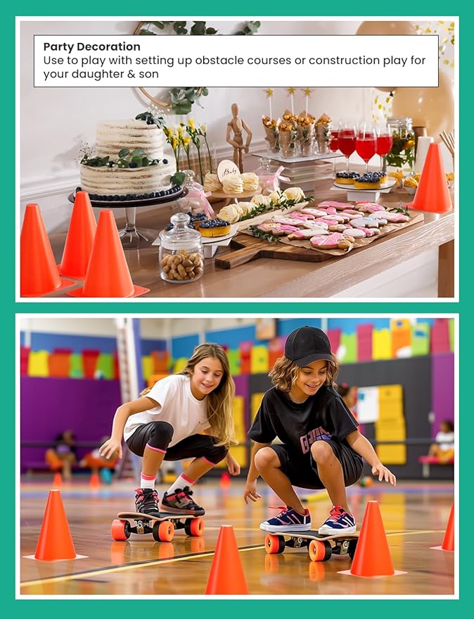 - Multipurpose Mini Traffic Cones : The football cones set are perfect for a variety of indoor and outdoor training and activities,such as soccer, basketball, rugby, baseball,games at theme parties and festivals,kid's games,roller skating, agility training, bicycle obstacle course, motorcycle training, dog training and more.Ideal choice for marking boundaries, setting up obstacles and decorations