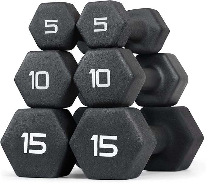 - π MADE FROM HIGH QUALITY, DURABLE MATERIAL - WF Athletic Supply Dumbbells Set is made from tough cast iron material which is affordable and perfect for home use and small personal training studio. These weights come with a neoprene coat that can withstand daily use while still looking pristine and well-kept. Its soft and smooth coating gives you comfort and ease of use. THIS SET INCLUDES TWO 5 lb, TWO 10 lb, TWO 15 lb DUMBBELLS