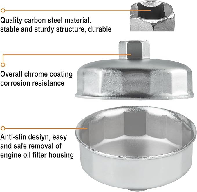 - STURDY MATERIAL - Made with quality carbon steel, the oil filter wrench is built to last with forged and heat-treatment process to add extra strength and durability.