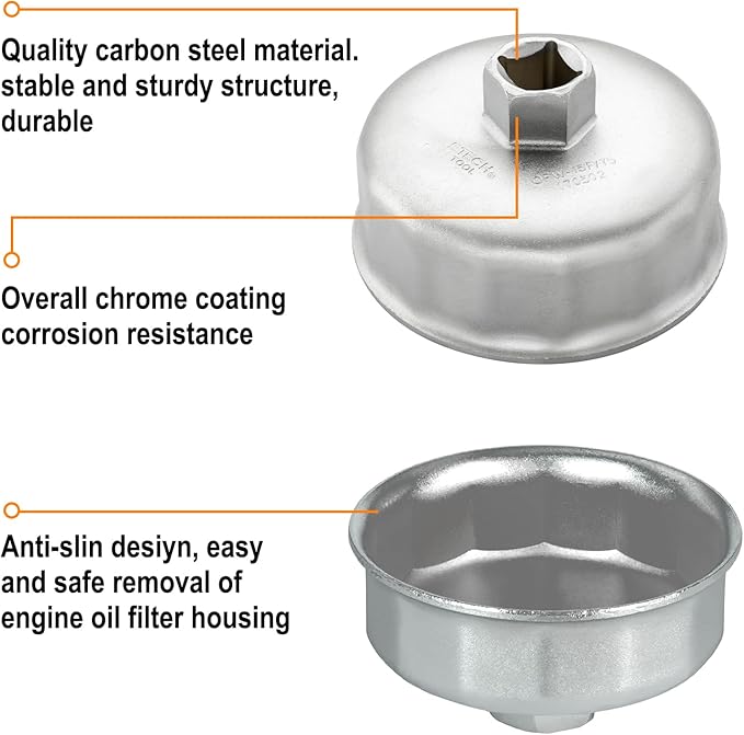 - APPLICATION RANGE - The 75mm x 15 flute oil filter cap wrench is designed to install and remove the auto oil filters,