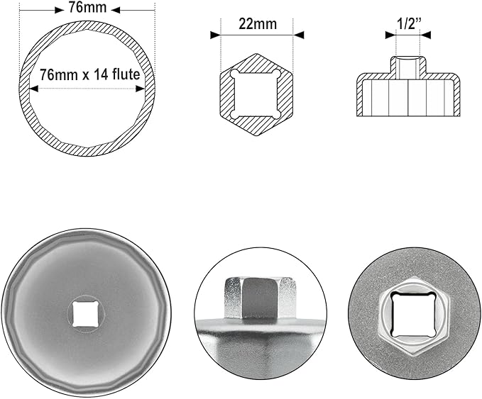 Jetech Oil Filter Cap Wrench with 76mm 14 Flute, Precision Machined Oil Filter Cap Remover Tool, Cartridge Type Oil Filter Socket Tool