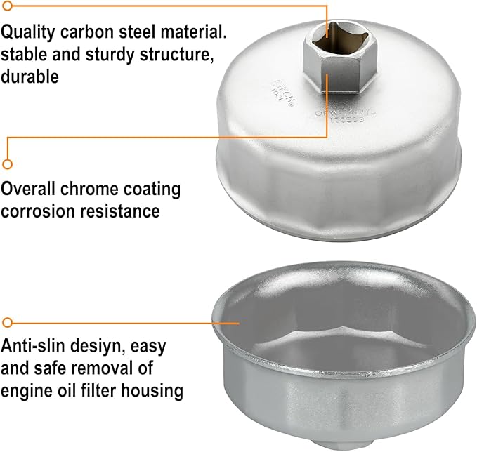 - STURDY MATERIAL - Made with quality carbon steel, the oil filter wrench is built to last with forged and heat-treatment process to add extra strength and durability.