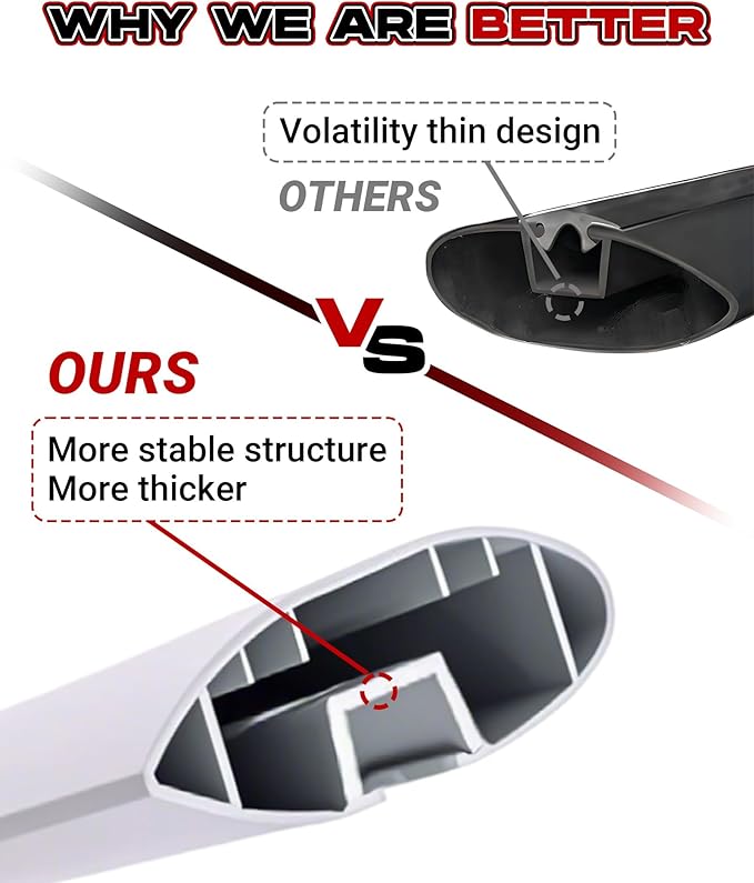 - 【WHISPER-QUITE】:The crossbars perfectly fits the luggage rack,with no gaps,no scratches.Benefiting from the aerodynamic design and sturdy structure,it remains free of whistling,rattling,movement,and excessive noise