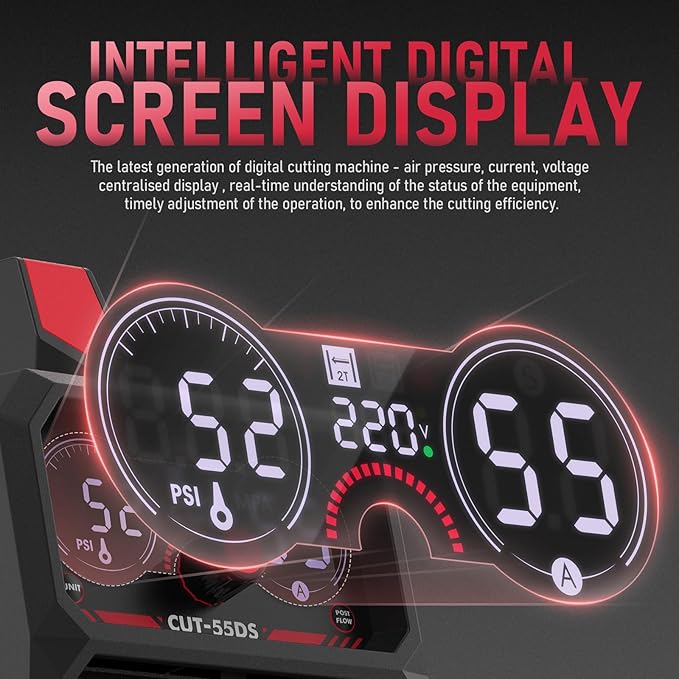 YESWELDER CUT-55DS Plasma Cutter, 55Amp Non-Touch Pilot Arc Air Power, Large Digital Display 110/220V Dual Voltage IGBT Inverter Plasma Cutting Machine with ETL Approved