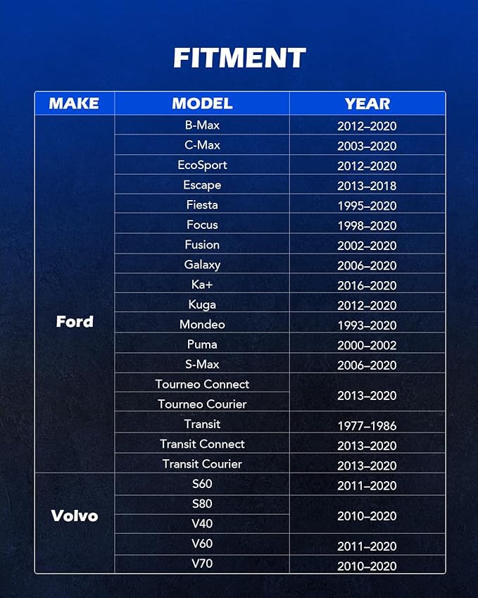 - WIDE COMPATIBILITY: Our tools are compatible with S60, S80, V40, V60, V70 Volvo & 1.5L & 1.6L Ford: B-MAX, C-MAX, EcoSport, Escape, Fiesta, Focus, Fusion, Galaxy, Ka+, Kuga, Mondeo, Puma, S-MAX, Tourneo Connect, Tourneo Courier, & Transit