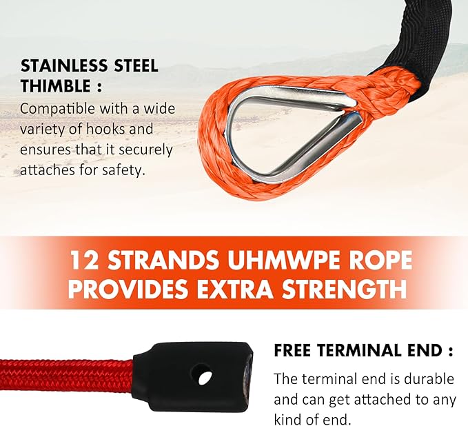 - Versatility: Engineered for a variety of winches ranging from 9,000 lbs to 14,500 lbs, this synthetic rope is an ideal candidate for your 4WD Off Road Vehicle SUV etc