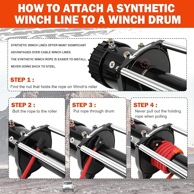 - Easy to install:Compared to metal winch cable, our synthetic rope winch cable winds better and No knots,designed with stainless steel rubber terminal end for easy installation on any winch (terminal end can be removed if not needed). Therefore, using synthetic winch rope will make installation, repair, and replacement much easier