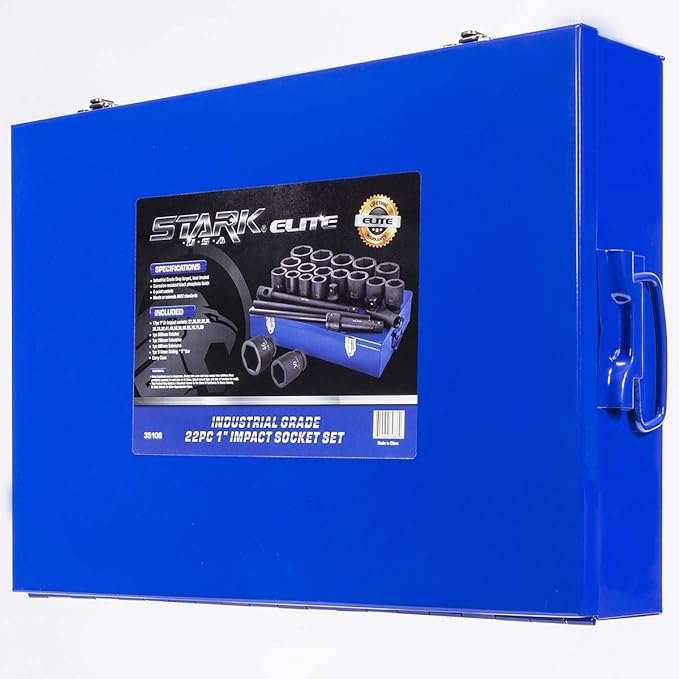 Stark USA 21-Pieces Metric Jumbo Assortment Impact Socket Set 1-inch DR Deep MM Drive Extension Bar with 27mm to 80mm Case
