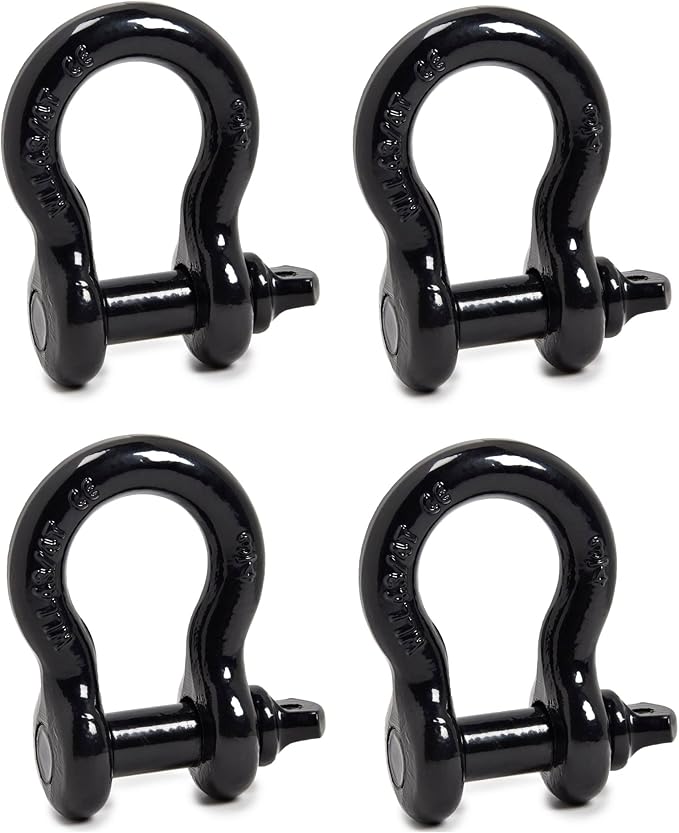 Hi-Gear (4 PK, Black Bow Shackles 3/4" D Ring Shackle Rugged Unbreakable 28.5 Ton (57,000 Lbs) Maximum Break Strength with 7/8'' Pin Bow Screw Heavy Duty D Ring for 4x4 Vehicle Recovery