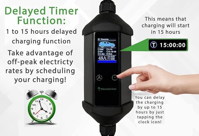 - ⌚DELAY TIMER: Up to 9 Hours (in 1 Hour increments). It has also a time of the charge (count down timer function) to take advantage of discount electric company rates.