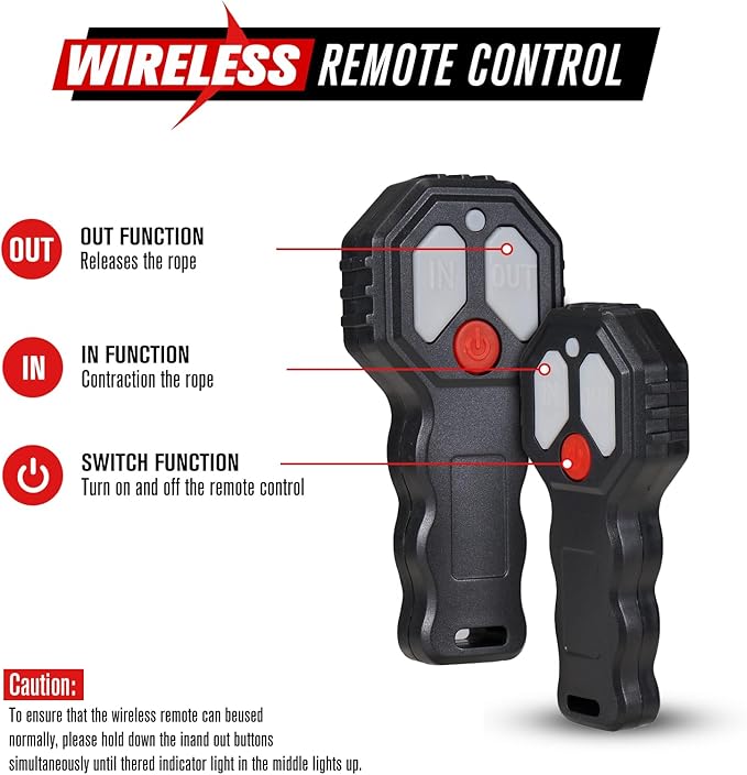 - WIRELESS CONTROL SYSTEM: The wireless remote control has a relay switch inside that can transmit the power from the vehicle battery to the winch, including 80FT long wireless control, and uses upgraded synthetic rope that is more than 10 times stronger than traditional ones.