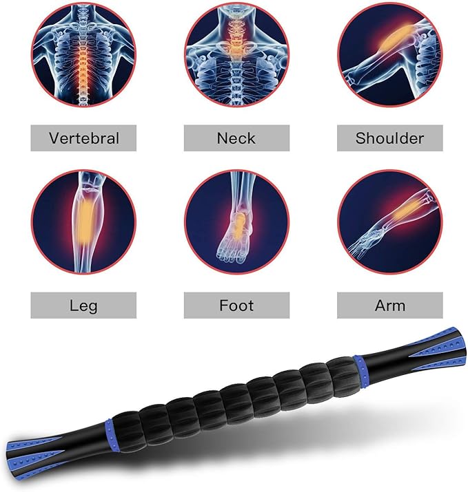 Muscle Roller Massage Roller Stick for Athletes, Help Reducing Muscle Soreness Cramping Tightness Leg Arms Back Calves Muscle Massager(Blue-Black- 18 inch)