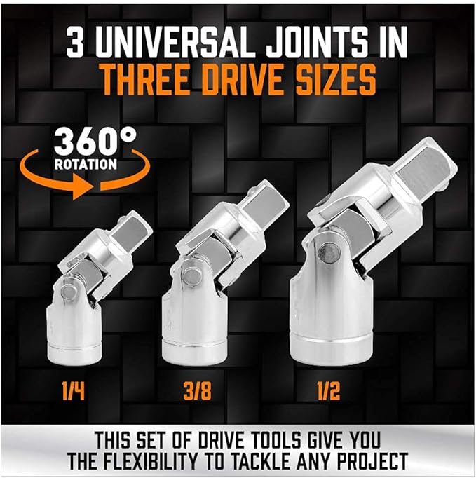 HORUSDY 20-Piece Socket Extension Bar Set, 1/4", 3/8" and 1/2" Drive Socket Extension Set, Universal Joint Socket, CR-V Steel