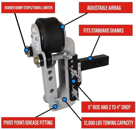 - Absorbs Road Shock, Bumps, Bangs, Jerks, Sways & Tugs. It cushion the ride when towing a camper with a compatible weight-distribution hitch. Built in air ride system + 4 bump cushions direct the road shock, bumps & bangs through the air ride system creating a safer, smoother towing experience.