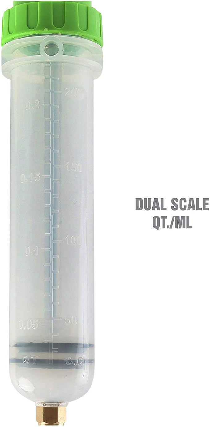 - CLEAR DUAL-SCALE CYLINDER FOR ACCURATE MEASUREMENT: Easy-to-read markings let you monitor fluid levels and transfer volumes precisely during maintenance and system topping.